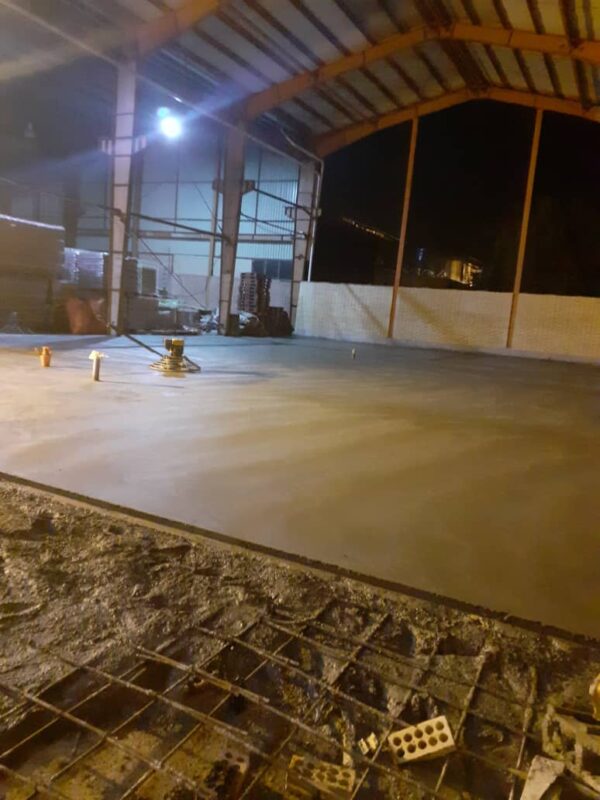 اجرای بتن سخت در شهرک صنعتی کاسپین قزوین با ماله پروانه ای